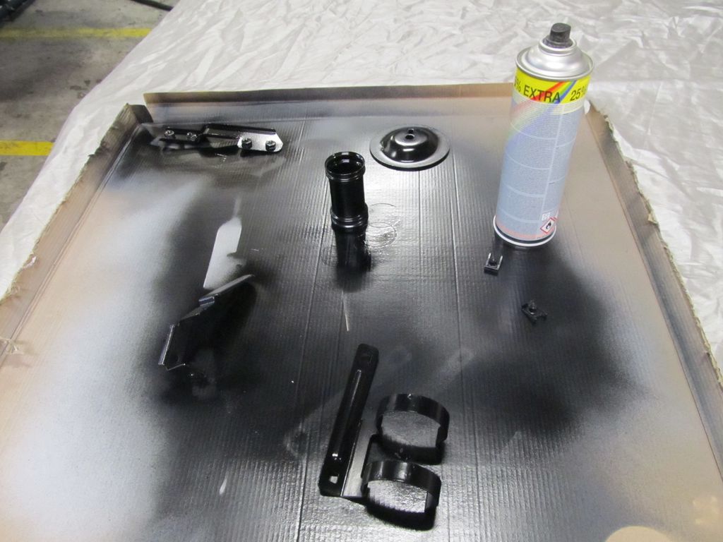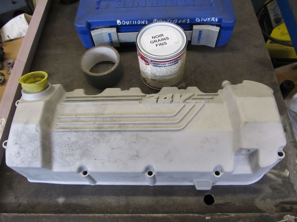 Pas de pluie avec même un peu de ciel bleu, sur la 605 reprise des hostilités avec le démontage de tout un tas de pièces pour atteindre la pompe à eau et les courroies d'accessoires déjà reçues et bien sur j'en profite pour nettoyer ( sablé et brossé ) tout ce qui est démonté y compris le couvre culasse avant pour le repeindre et ce qui vas être accessible dans le compartiment moteur !