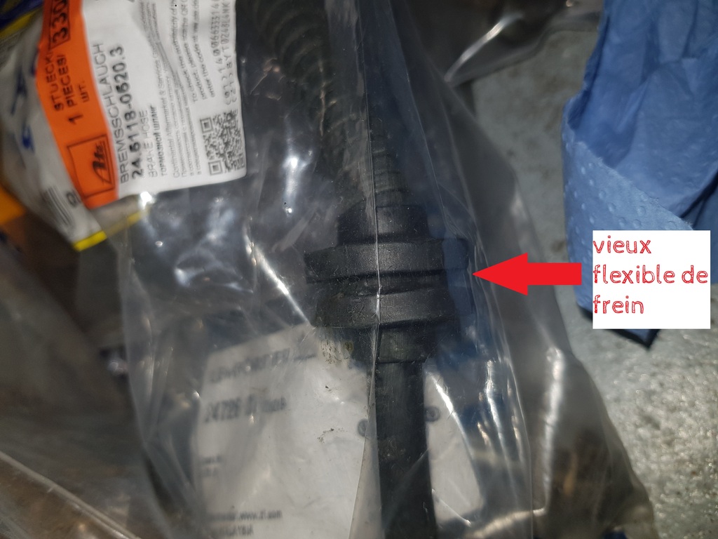Les conduites de frein les plus vers l'intérieur à l'arrière j'ai trouvé d'origine Peugeot, celles vers l'extérieur sont Bosch. Sur la face avant, je n'ai trouvé que ATE. Celles-ci sont soit disant compatibles mais sont légèrement plus longues que celles d'origine et la partie de fixation en caoutchouc au milieu n'est pas du même style. J'ai improvisé avec des zip ties.