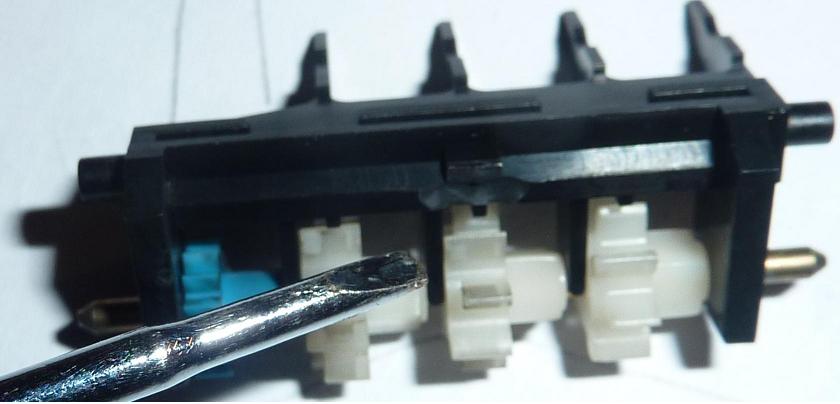 Voici la pièce qui nous ennuie (au bout du tournevis) :