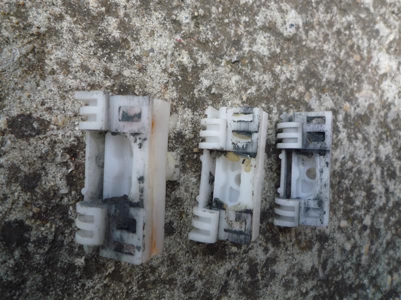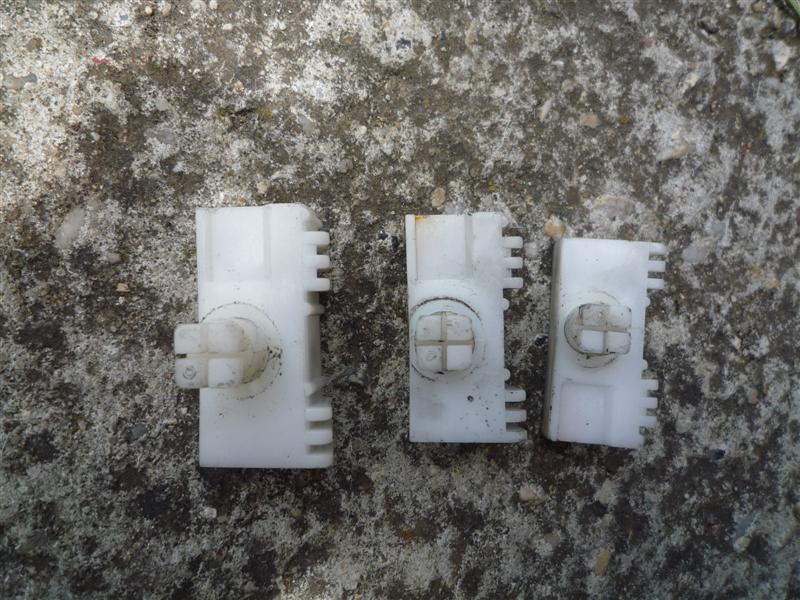 Quand c'est le guide qui casse, la solution est de trouver un LVE de phase 1, le guide plastique se monte sans soucis sur les LVE de phase 2, il est surtout beaucoup plus renforcé au niveau de son point faible.Voici les 2 bouts qui ce fixe dans le guide de la vitre :