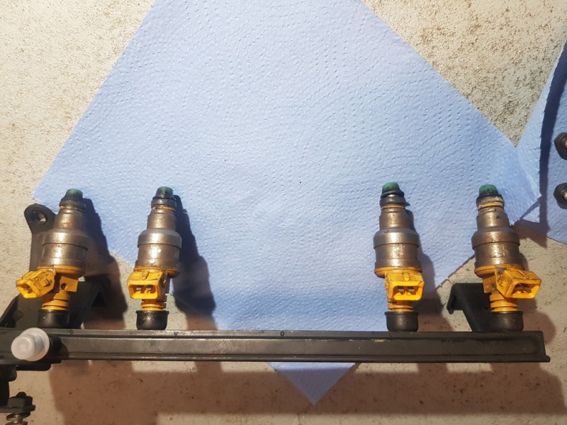 Les injecteurs ont été nettoyés un peu (à la main) et réinstallés juste pour voir s'il démarre. J'en ai acheté de nouveaux Bosch, mais je ne veux pas les obstruer avec tout le carburant sale encore dans les conduites.