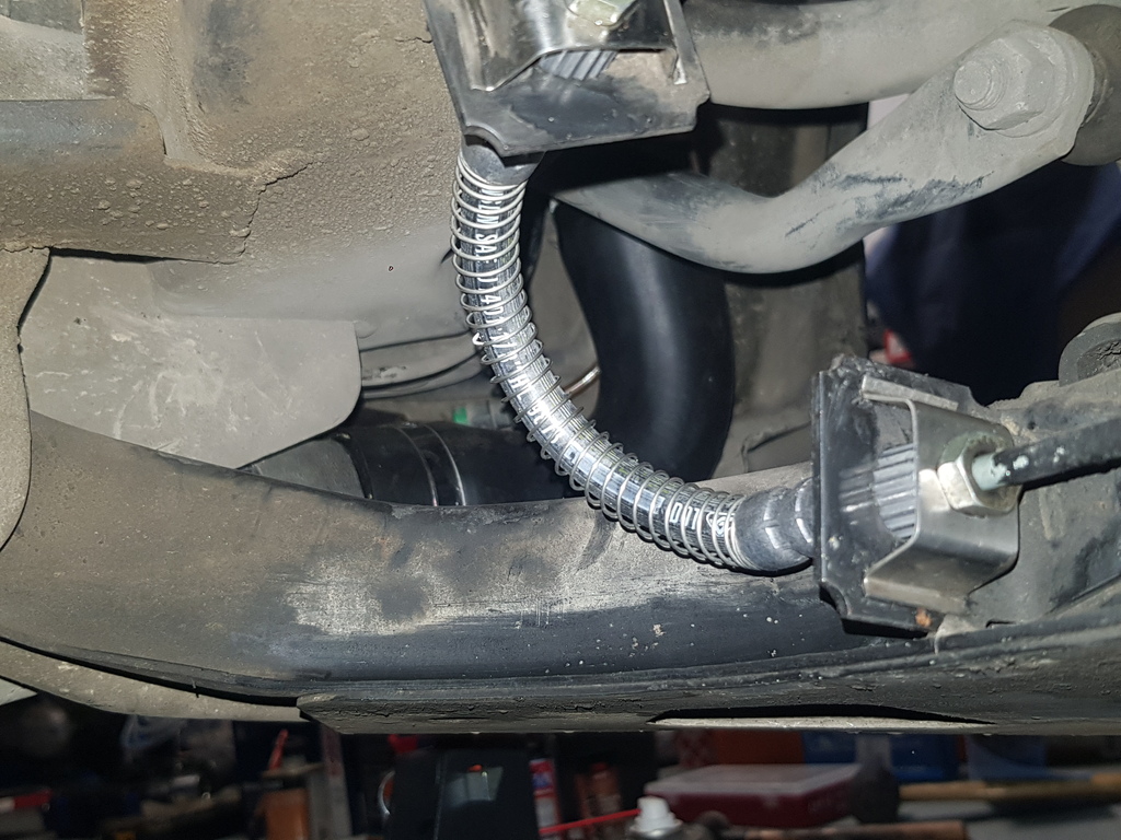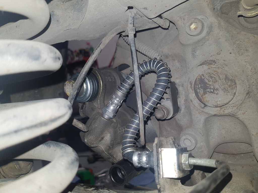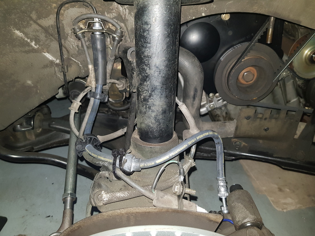 Les conduites de frein les plus vers l'intérieur à l'arrière j'ai trouvé d'origine Peugeot, celles vers l'extérieur sont Bosch. Sur la face avant, je n'ai trouvé que ATE. Celles-ci sont soit disant compatibles mais sont légèrement plus longues que celles d'origine et la partie de fixation en caoutchouc au milieu n'est pas du même style. J'ai improvisé avec des zip ties.