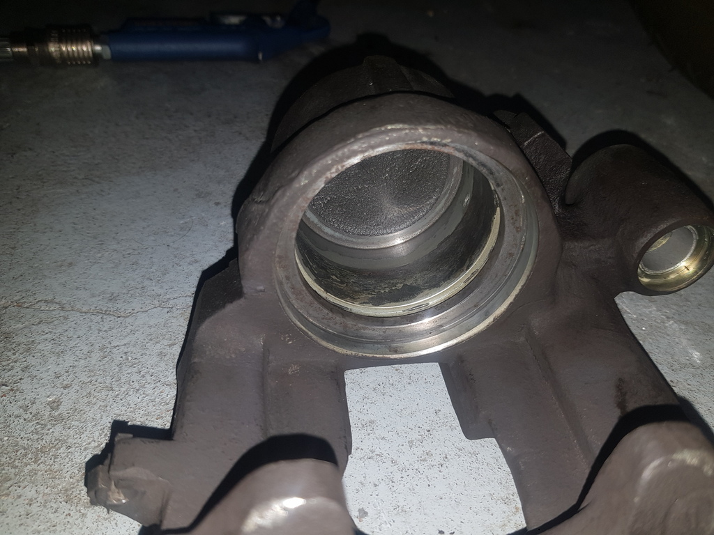 L'intérieur des freins était dégoûtant, avec beaucoup de liquide de frein boueux et de l'oxydation sur les parois du cylindre de frein. J'ai utilisé un dremmel avec une brosse métallique en plastique pour nettoyer du mieux que je pouvais sans le rayer. Je suis satisfait du résultat, pas parfait mais propre et fonctionnel.