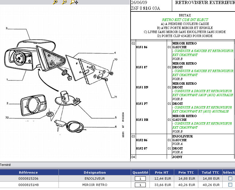 Dans le schéma, à droite tu as la liste des pièces, tu double clique sur celles qui t'intéressent, et ça va se mettre dans le panier, que tu vas consulter ensuite, mais parfois problème aussi pour aller au panier, il y a une autre astuce, je t'expliquerais si tu n'y arrives pas.