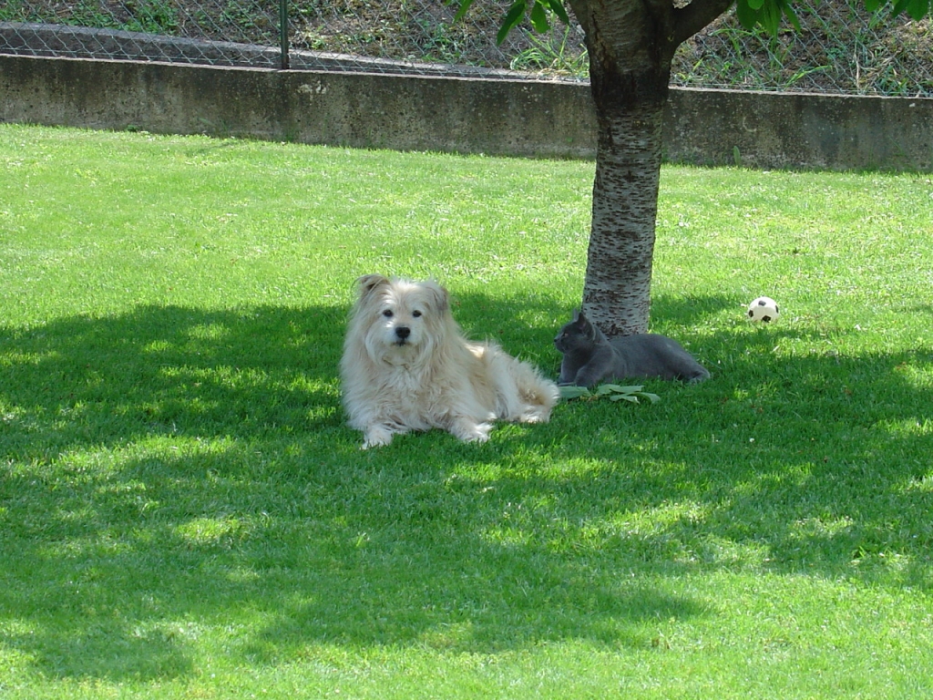 Nos chattes ont désormais un ptit copain à la maison dénommé Doubaï, ils s'amusent souvent ensemble (minette adore voler dans le jardin, elle est complètement maso !) :