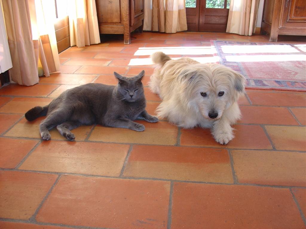 Les chats de Nath et sa chienne de marque beauceron affectueusement prénommée "MP3", pardon "Vinyle" plutôt (Pluto ?)