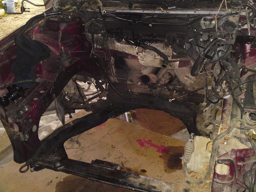 Lundi 25 07 2011, après midi, retour au travaux sur la voiture, et démontage sortie du moteur boite ,les infos pour la commande d'embreyage m'ont bien servi.