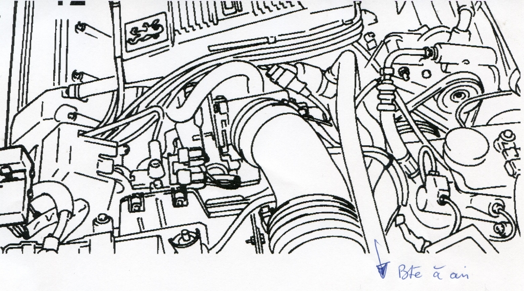 Pourquoi ? Parce qu'il y a un petit tuyau qui passe à travers un clapet anti-retour et qui va se raccorder sur le boitier papillon, à coté du tuyau de l'électrovanne de ralenti.