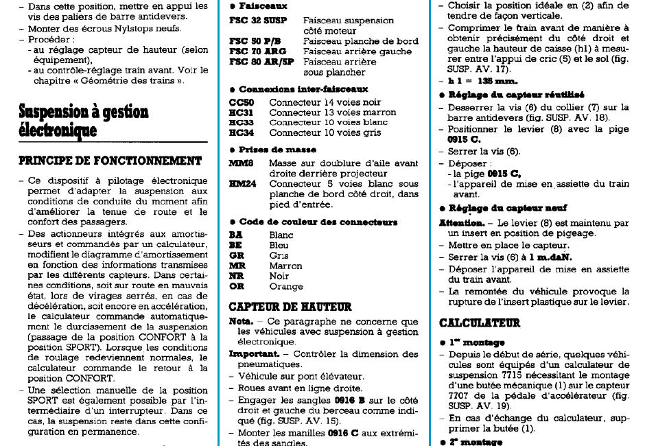 NOTA : Une défectuosité de la mémoire permanente du calculateur, une tension batterie trop élevée, les connecteurs sur calculateur débranchés, une coupure d'un ou des fils d'alimentation calculateur n'entraßnent pas l'allumage des voyants .Voila ! Dit moi si tu veux quelque chose en particulier, j'ai d'autres choses sur la suspension.