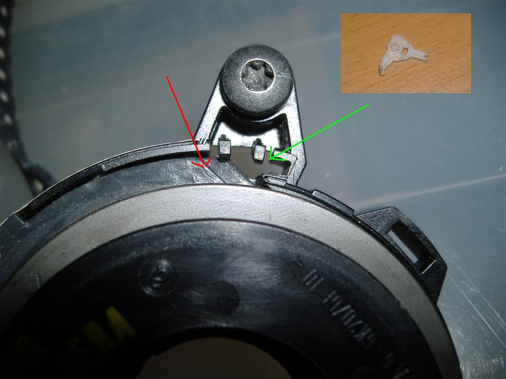 il s'agit d'un loquet qui compte le nombre de tours, même si il est manquant, ce n'est pas lui qui génère l'allumage du voyant, néanmoins le mécanicien est quasi sûr que mon contacteur tournant est HS au vu de mes explications, car la casse de cette pièce a donc entrainé un arrachage des pistes internes du contacteur.