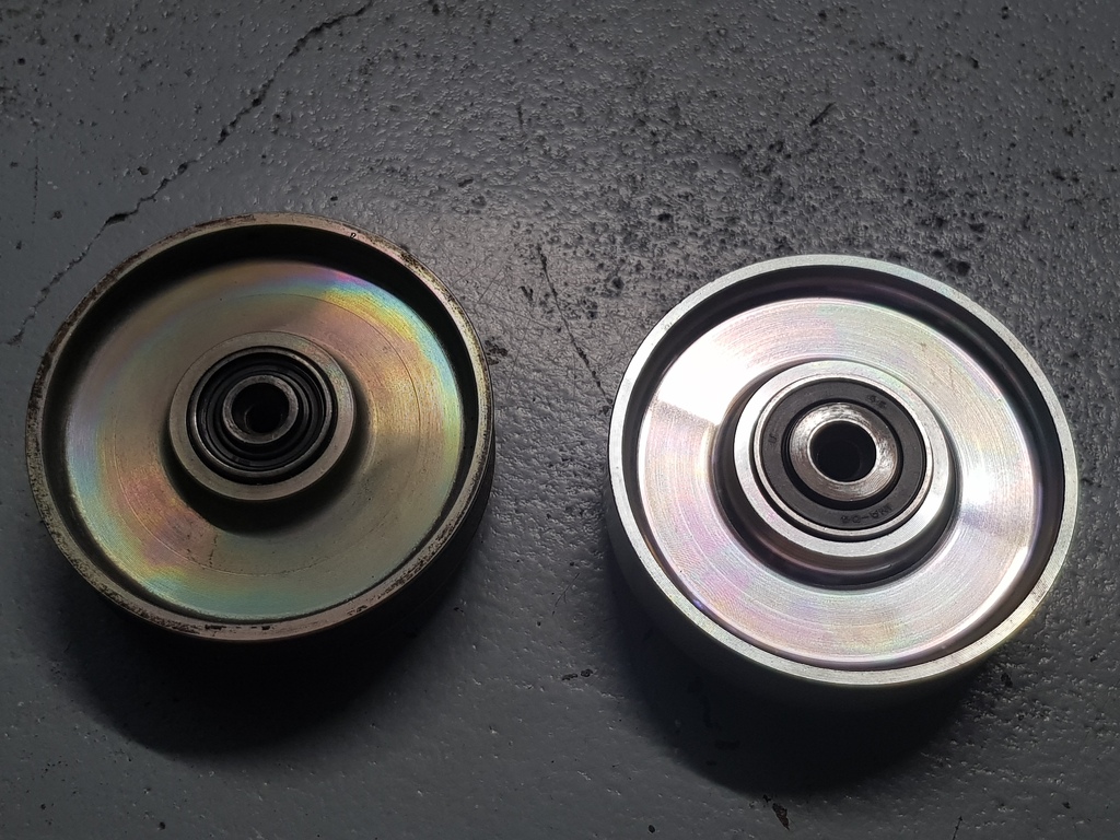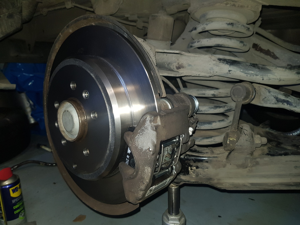 Les disques avant sont Jurid et sont revêtus. J'ai également mis des disques revêtus sur le 406 et j'en suis très satisfait. Ils résistent assez bien à la rouille. Les disques avant sont sortis (et sont entrés) sans problème, mais ceux à l'arrière ont été un véritable combat. J'ai réussi à retirer les anciens en vissant le boulon supérieur le plus épais de l'étrier pour le pousser contre le disque. Puis je lui ai donné quelques tapotements pas si doux. J'ai retiré le boulon et fait tourner le disque. J'ai répété cela environ 15 fois et ce n'est qu'à ce moment-là que je me suis détaché. Je ne voulais pas le faire trop vite pour ne pas endommager le roulement. Je pense avoir réussi, même si le roulement arrière gauche faisait un son un peu plus "sec" que celui de droite... On verra plus tard.