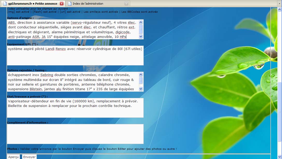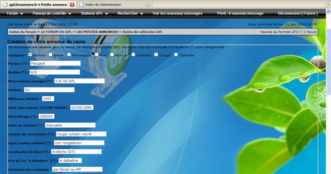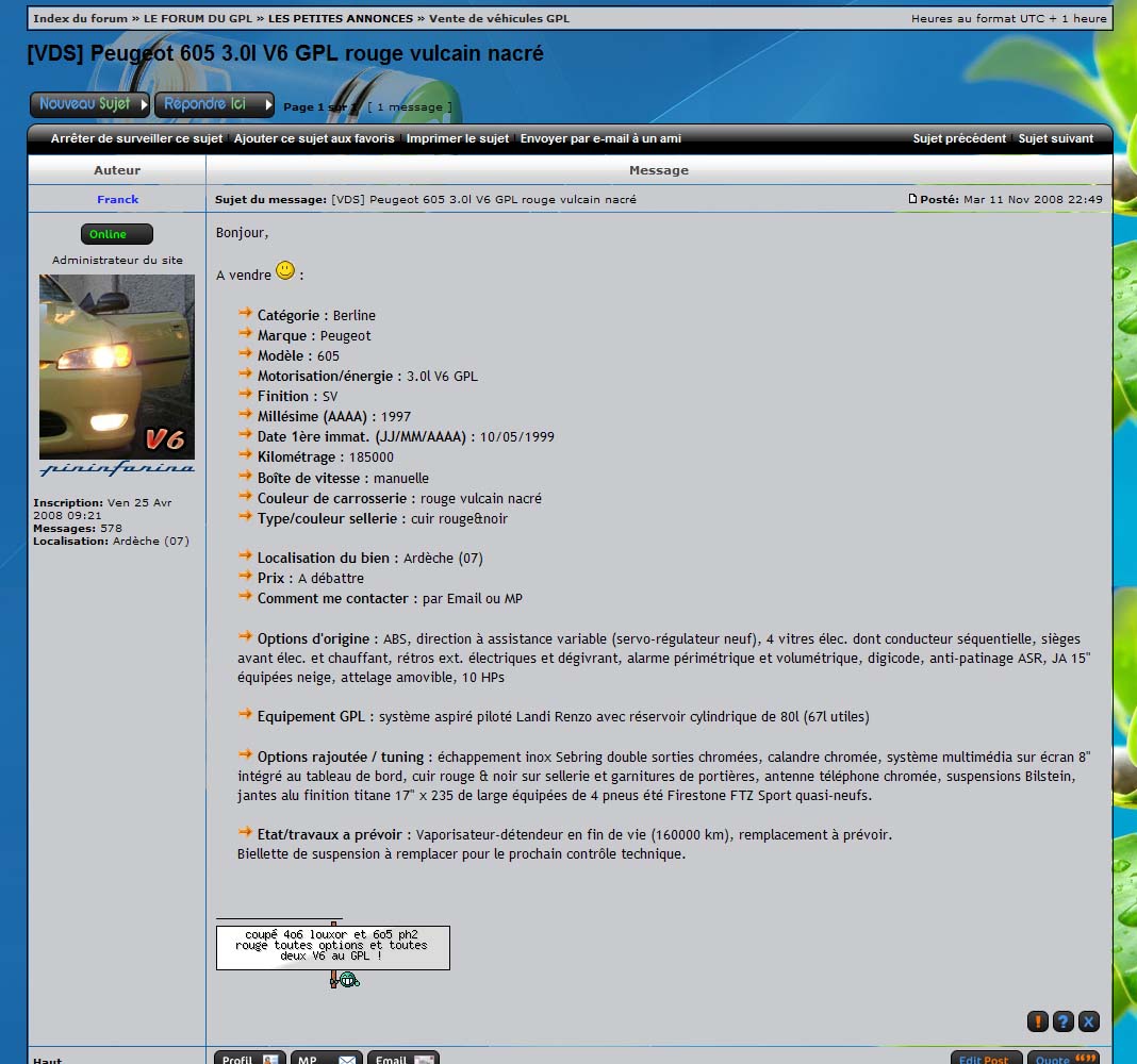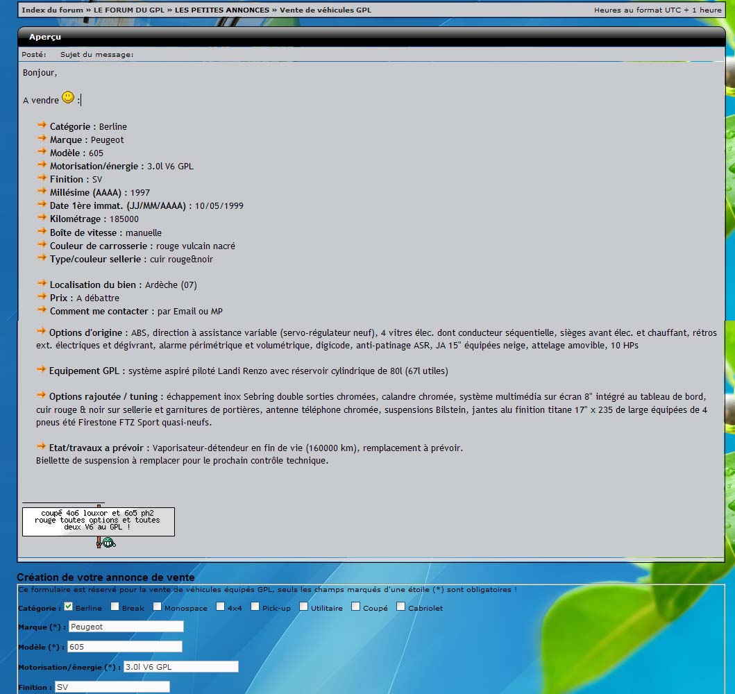 - Cet assistant à la saisie n'a été mis en place que pour la vente des Peugeot 605. La recherche de 605/pièces et vente de pièces détachées pour 605 se font comme avant dans un topic classique. Pour cela, j'ai donc dû réorganiser la section "LES PETITES ANNONCES".