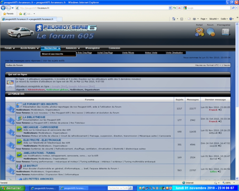 30/10/10 : mise Ă jour du phpBB 3.0.6 vers 3.0.7-PL1.